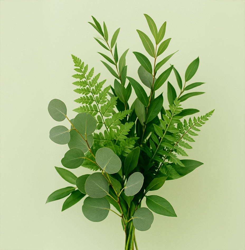 Greens do more than fill space — they bring structure, texture, and a natural rhythm to your floral designs. Our foliage collection includes timeless staples like eucalyptus, leather leaf fern, and ruscus, as well as modern favorites like salal, plumosa, grevillea, and pittosporum.